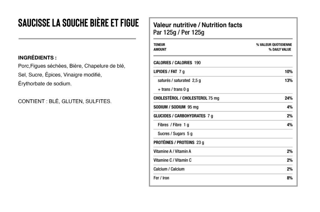 Que vous soyez de type sucré, salé, piquant, végé ou sans gluten, vous trouverez assurément une panoplie de saucisses à votre goût. Vous les aimerez en hot-dogs européens ou tout simplement accompagnées de notre choucroute importée d’Allemagne.